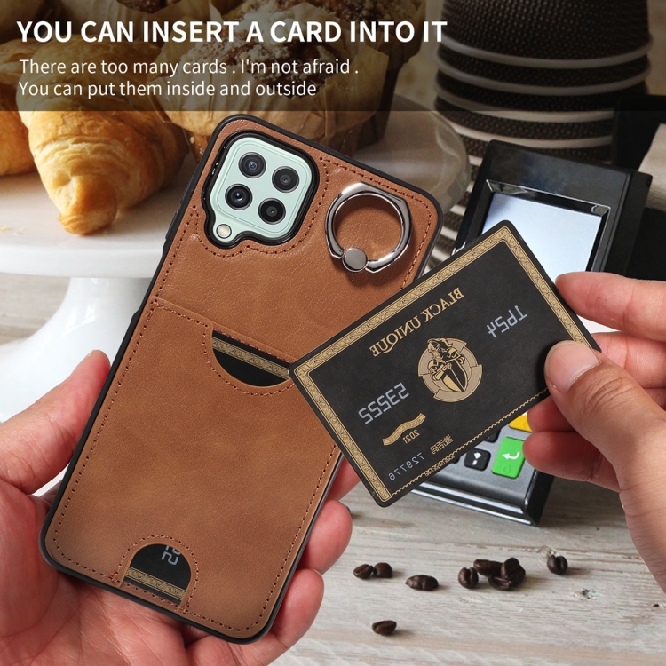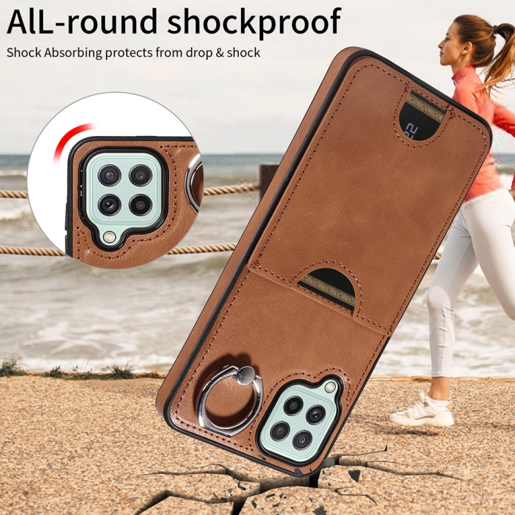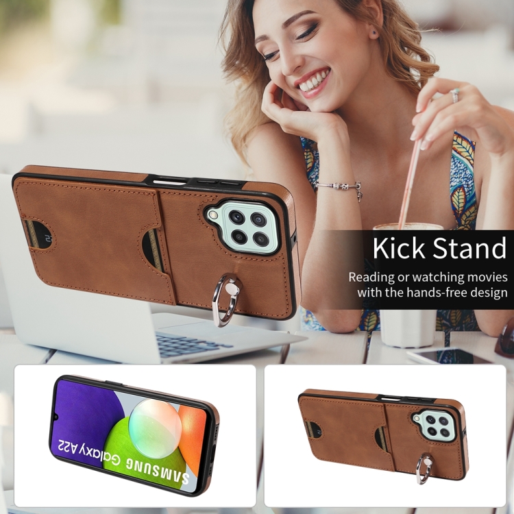 Funda para Teléfono Samsung Galaxy A22 4G con Soporte para Anillo y Ranura para Tarjeta (Marrón)