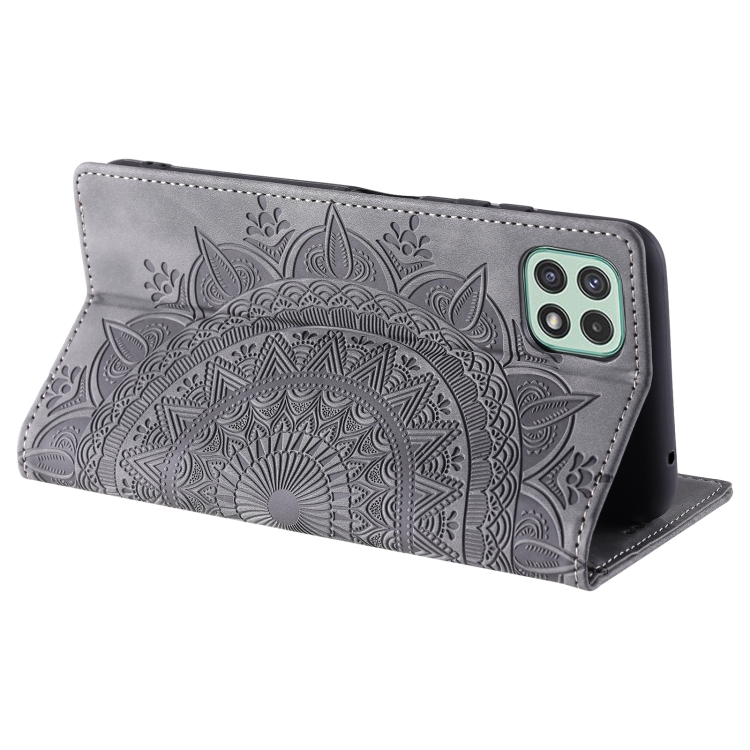 Estuche para Teléfono Samsung Galaxy A22 5G A22S 5G Cuero Magnético Relieve Tótem (Gris)