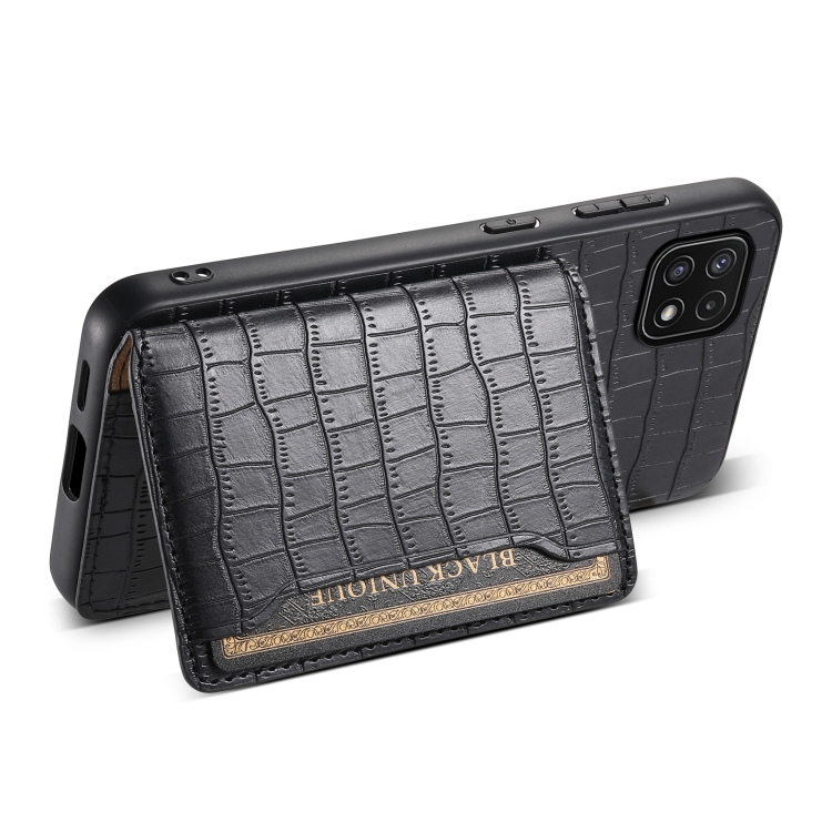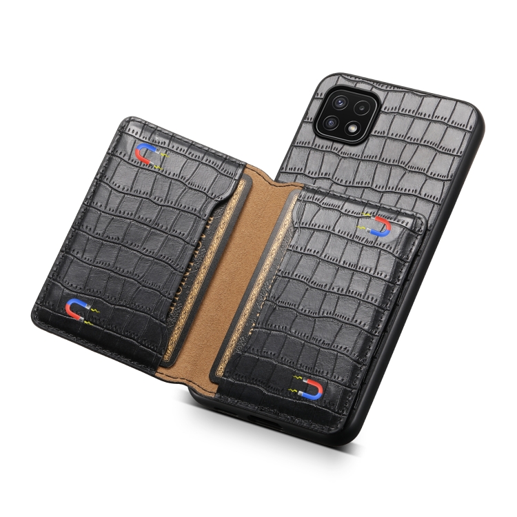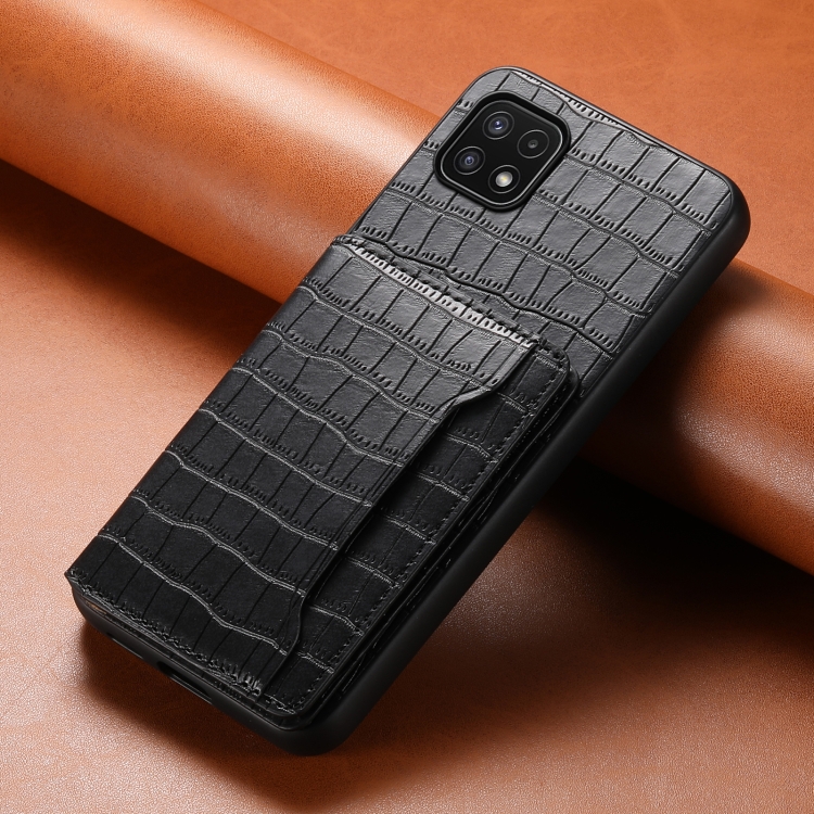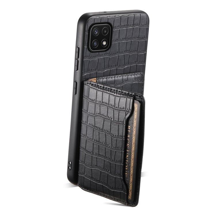 Estuche para Teléfono Samsung Galaxy A22 5G Bolsa para Tarjetas con Textura de Cocodrilo (Negro)