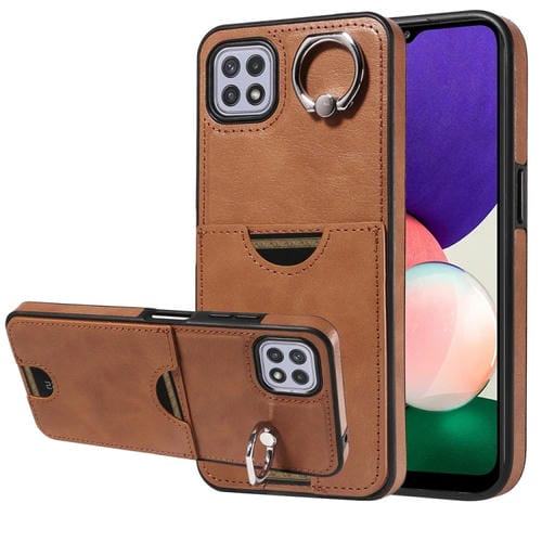 Funda para Teléfono Samsung Galaxy A22 5G con Soporte para Anillo y Ranura para Tarjeta (Marrón)