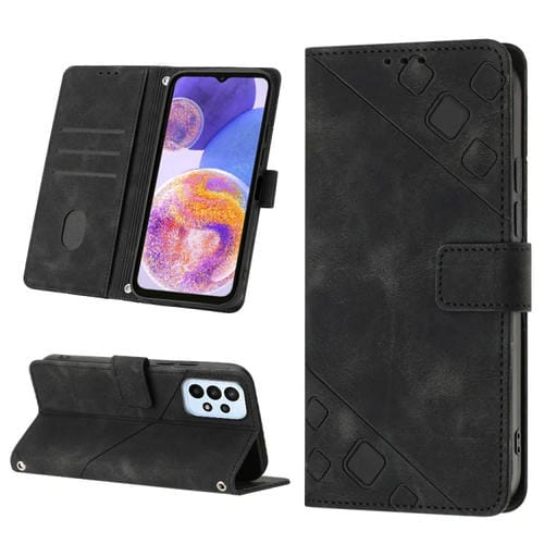 Estuche para Teléfono Samsung Galaxy A23 4G F23 5G Cuero En Relieve con Tacto de Piel (Negro)