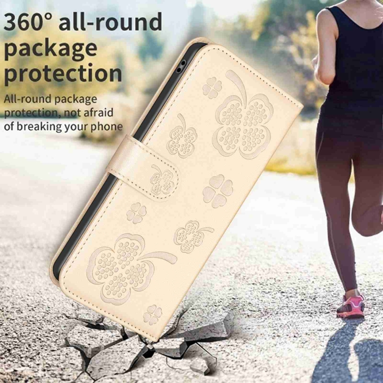 Funda de Cuero Samsung Galaxy A24 4G con Relieve de Cuatro Hojas (Dorado)
