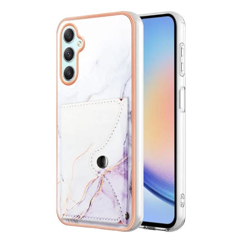 Estuche para Teléfono Samsung Galaxy A24 con Ranura para Tarjeta Imd y Patrón de Mármol (Blanco y Morado)