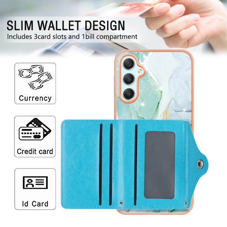 Estuche para teléfono Samsung Galaxy A25 5G con ranura para tarjeta IMD patrón de mármol (Verde)