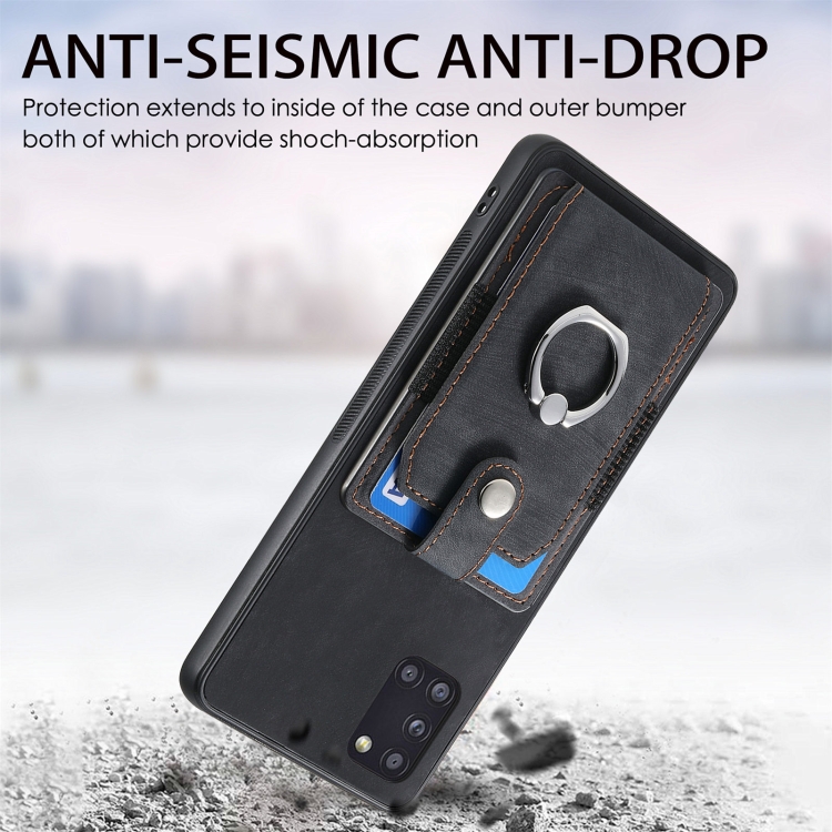 Funda para Teléfono Samsung Galaxy A31 con Billetera, Tarjeta, Anillo y Sensación de Piel Retro (Negro)