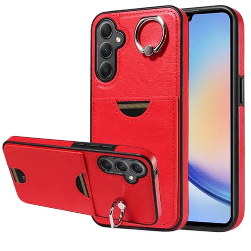 Funda para Teléfono Samsung Galaxy A34 5G con Soporte para Anillo y Ranura para Tarjeta (Rojo)