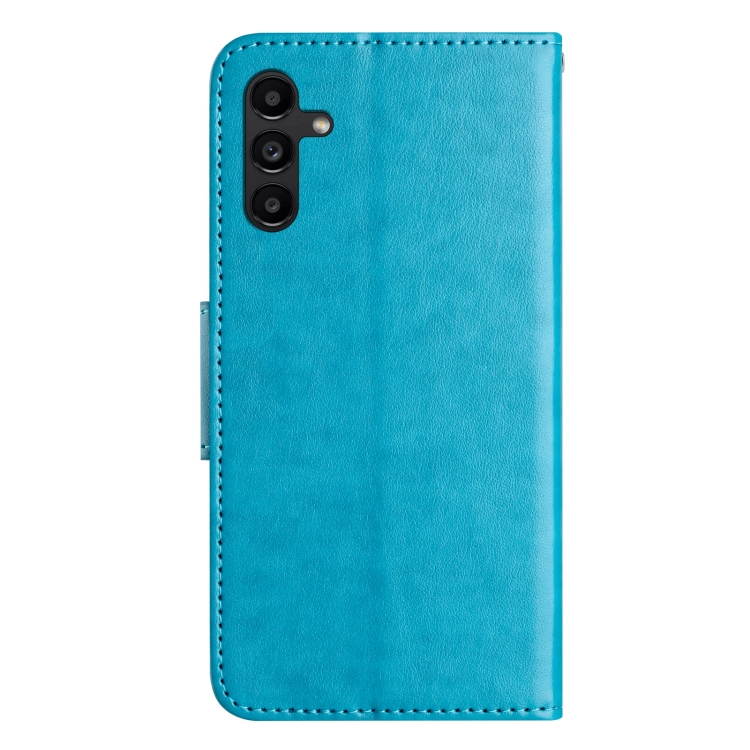 Funda de Cuero para Samsung Galaxy A35 con Tapa y Patrón de Flores de Mariposa (Azul)