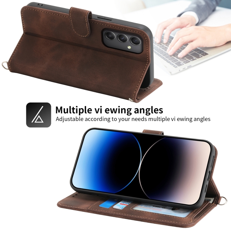Funda para Teléfono Samsung Galaxy A35 Cuero con Billetera en Relieve y Flores (Marrón)
