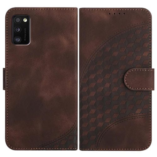 Funda de Cuero Samsung Galaxy A41 Yx0060 con Relieve y Cabeza de Elefante con Cordón (Café)