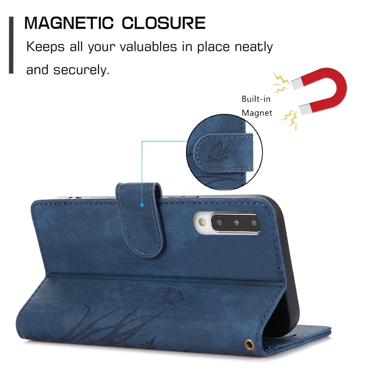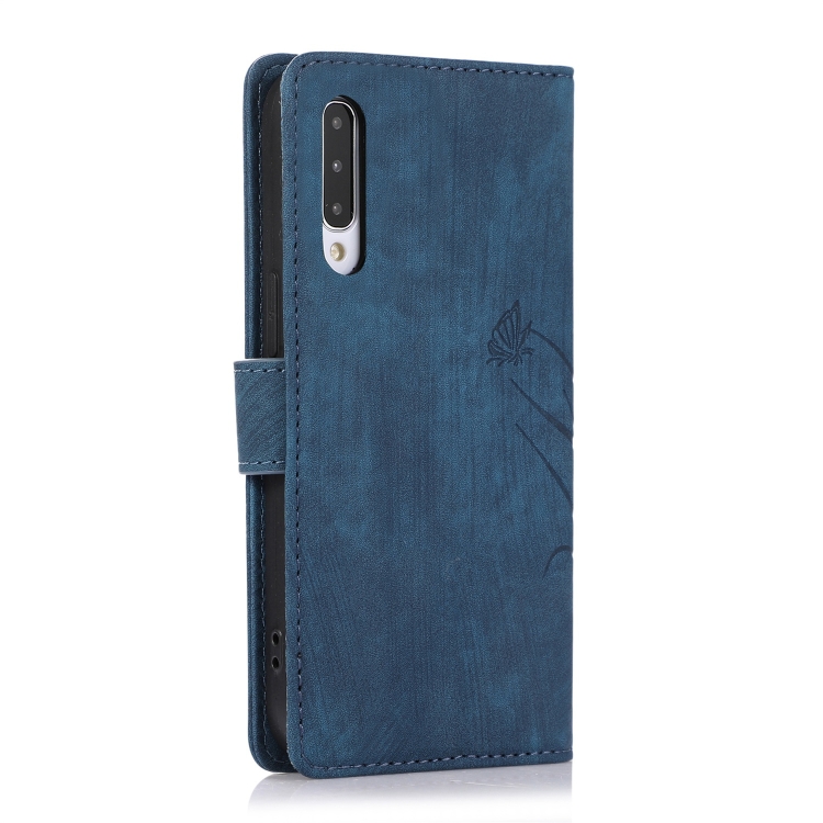 Funda para Teléfono Samsung Galaxy A50 / A50S Cuero con Relieve Mariposa Orquídea (Azul)