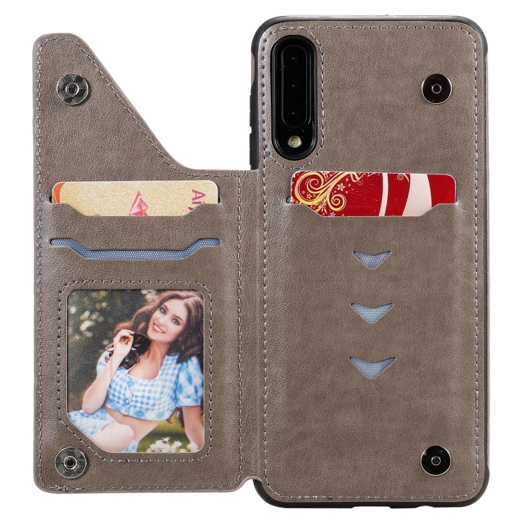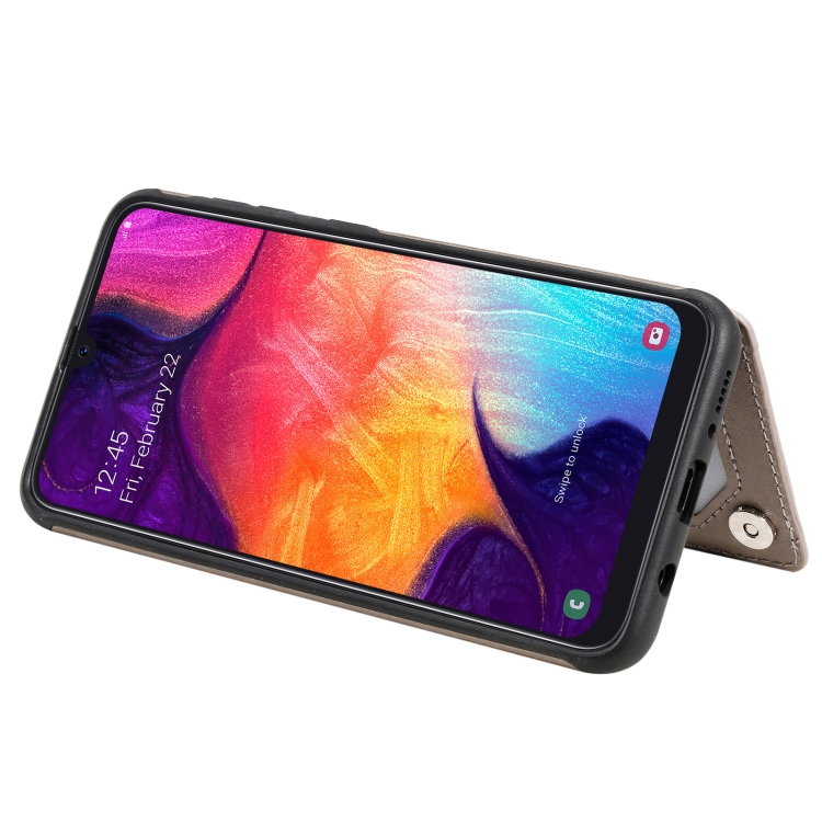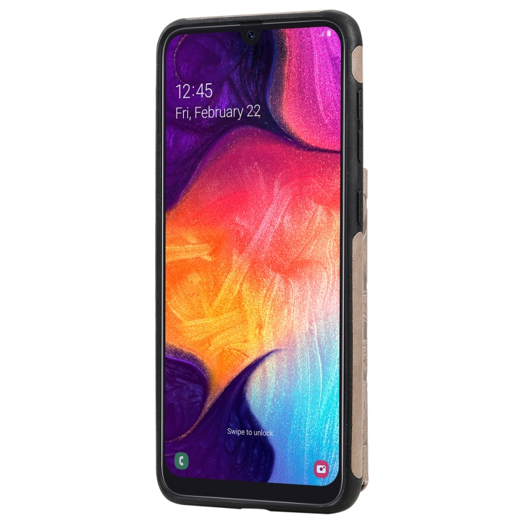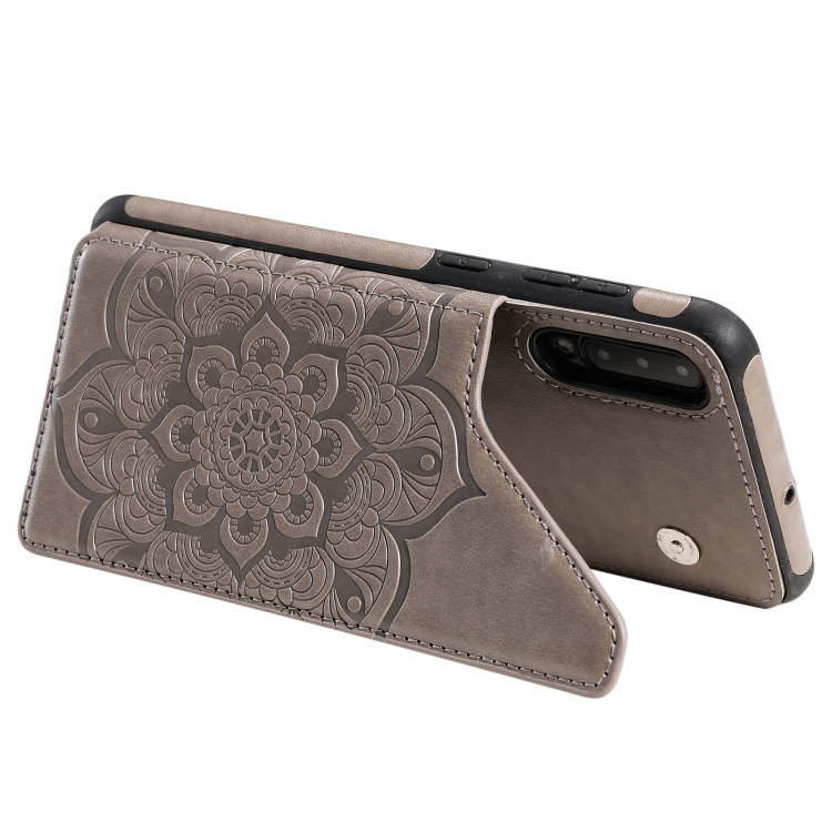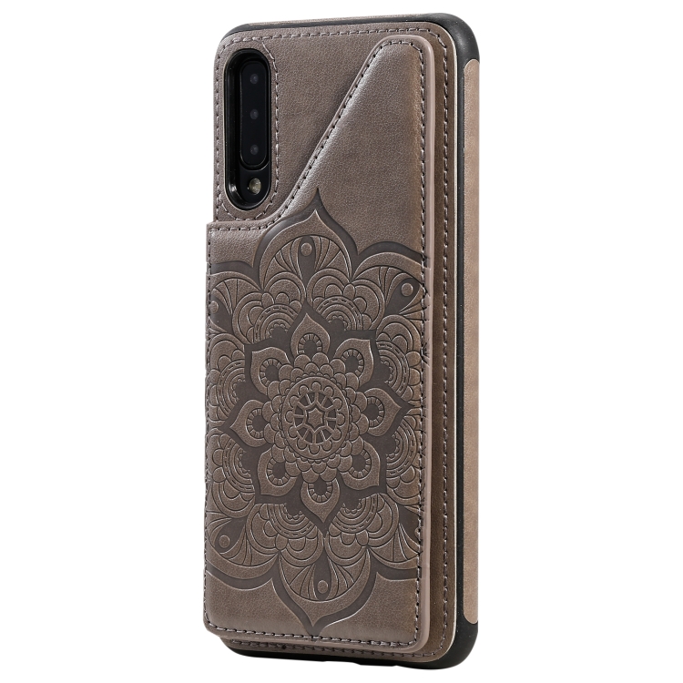 Estuche Protector Samsung Galaxy A50 Flor Patrón Grabado En Relieve a Prueba de Golpes con Soporte y Ranuras para Tarjetas (Gris)