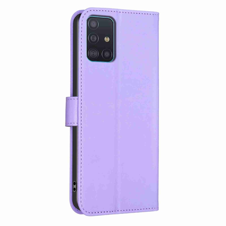 Funda de Cuero Samsung Galaxy A51 4G con Relieve de Cuatro Hojas (Púrpura)