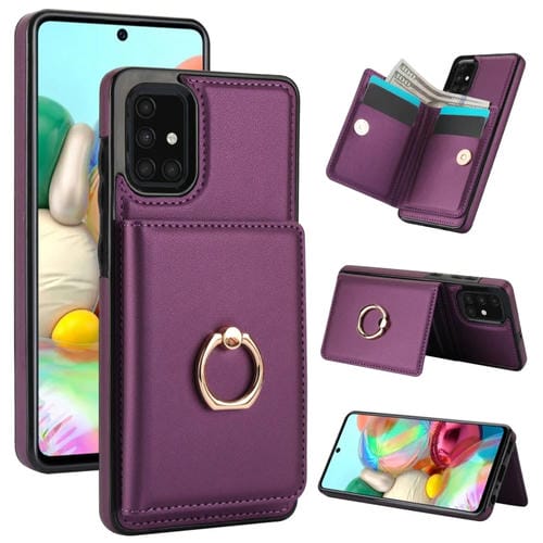 Estuche para teléfono Samsung Galaxy A51 4G Rfid Tarjeta Antirrobo con Soporte para Anillo (Púrpura Oscuro)