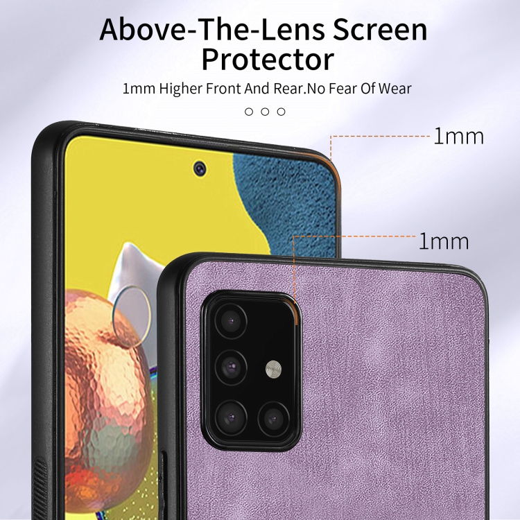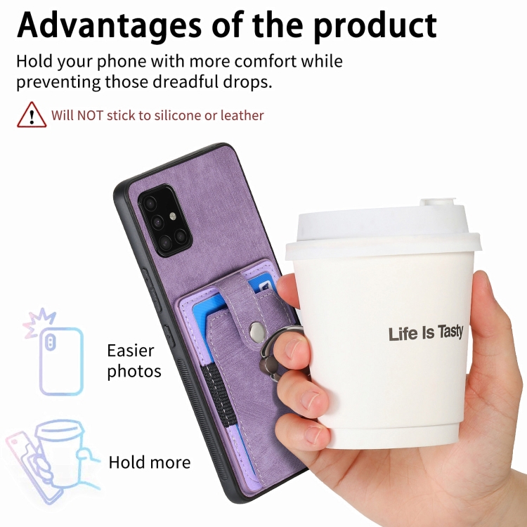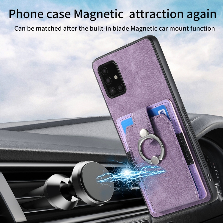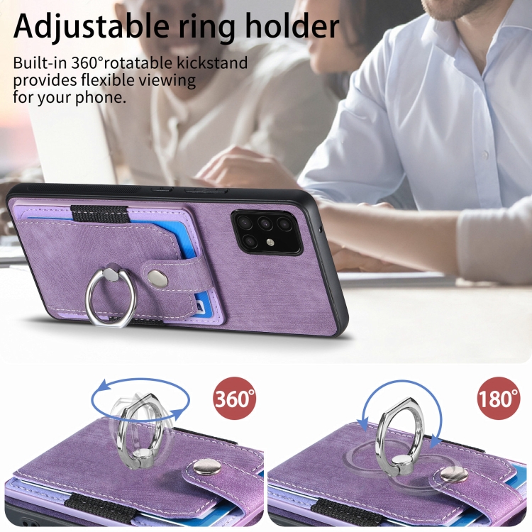 Funda para Teléfono Samsung Galaxy A51 con Billetera, Tarjeta y Anillo con Sensación de Piel Retro (Púrpura)