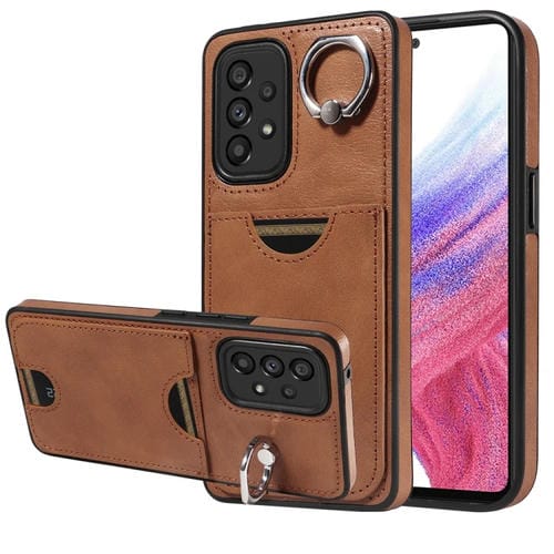 Funda para Teléfono Samsung Galaxy A53 5G con Soporte para Anillo y Ranura para Tarjeta (Marrón)