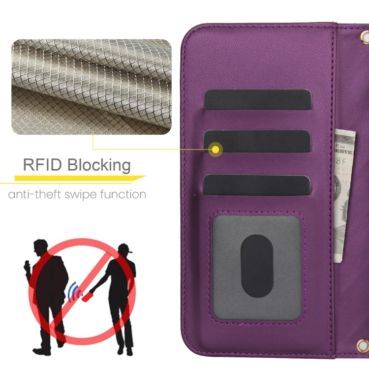 Funda Cruzada de Cuero Samsung Galaxy A54 5G Rómbica Multifunción (Púrpura Oscuro)