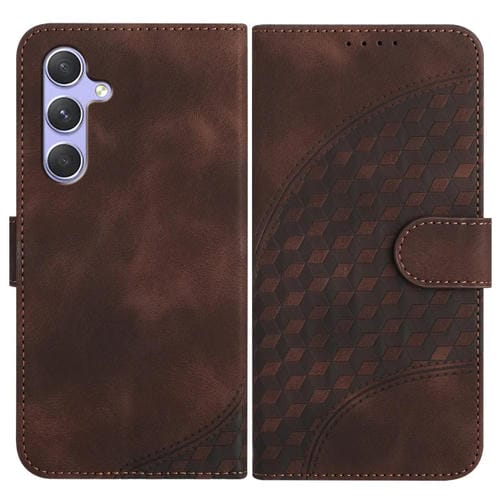 Funda de Cuero Samsung Galaxy A54 5G Yx0060 Relieve Cabeza de Elefante con Cordón (Café)