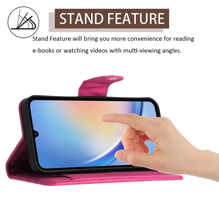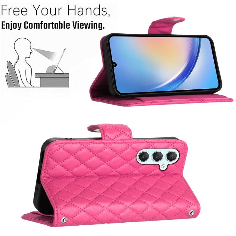 Funda para Teléfono Samsung Galaxy A54 con Tapa de Cuero Textura Rómbica y Cordón (Rojo Rosa)