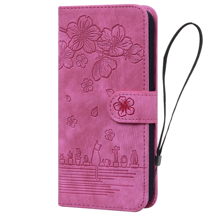 Funda para Teléfono Samsung Galaxy A55 5G Cuero Relieve Gato Sakura Dibujos Animados (Rojo Rosa)