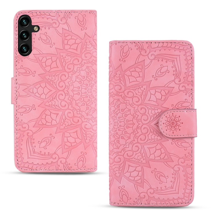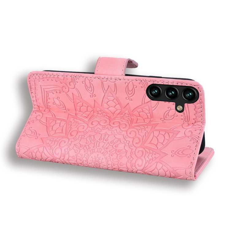Funda para Teléfono Samsung Galaxy A55 5G Piel de Becerro Doble Pliegue Relieve Mandala (Rosa)