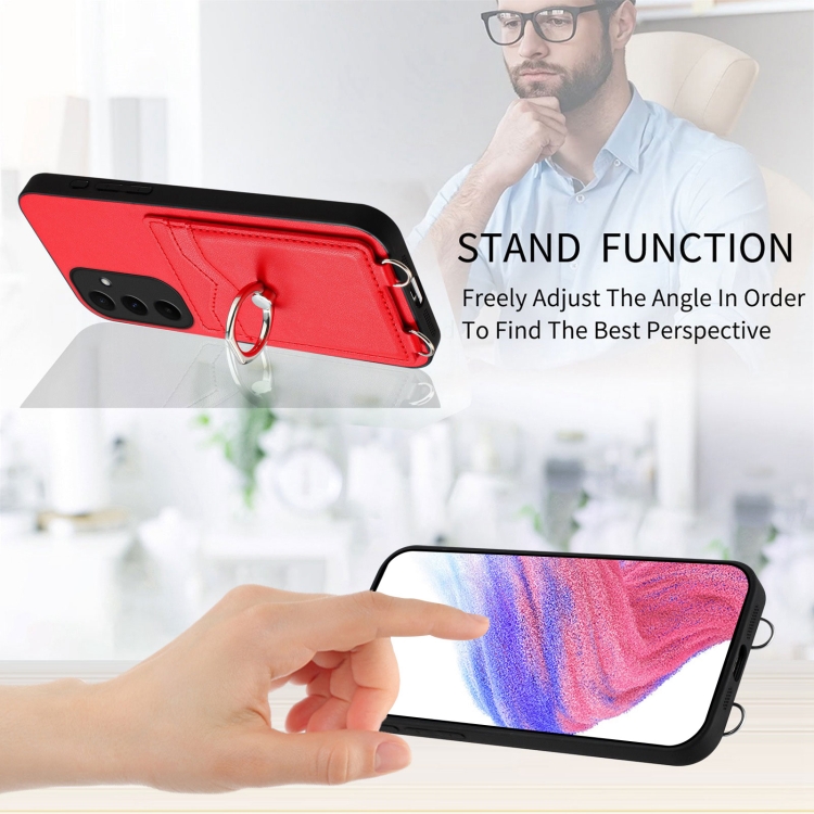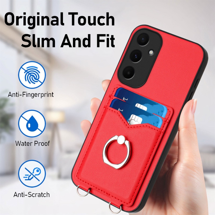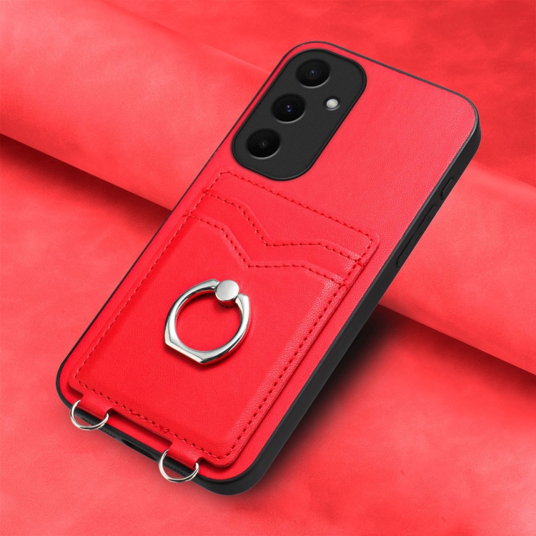 Estuche para Teléfono Samsung Galaxy A55 5G R20 con Soporte para Tarjeta con Anillo (Rojo)