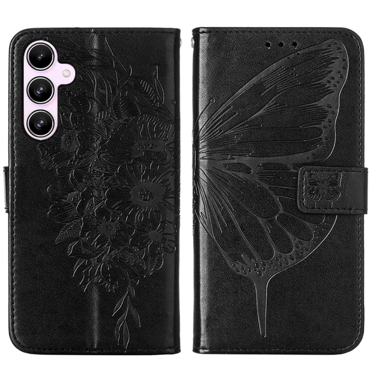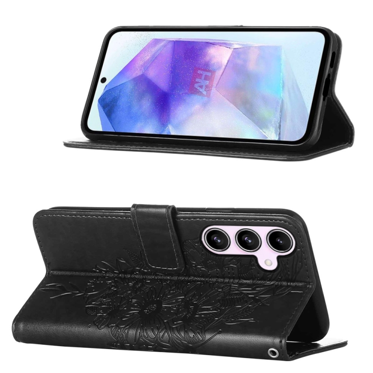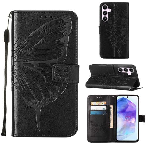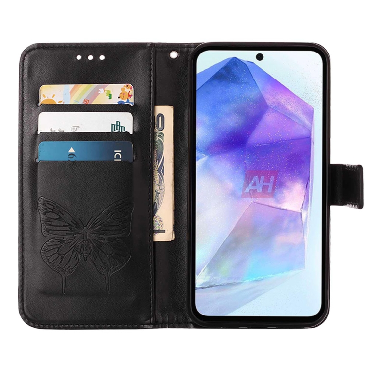 Funda de Cuero para Samsung Galaxy A55 con Mariposa en Relieve (Negro)