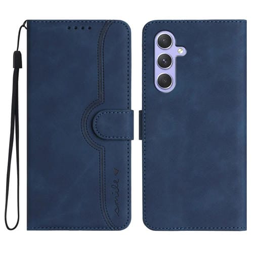 Funda para Teléfono Samsung Galaxy A55 Cuero Sensación de Piel Patrón de Corazón (Azul Real)
