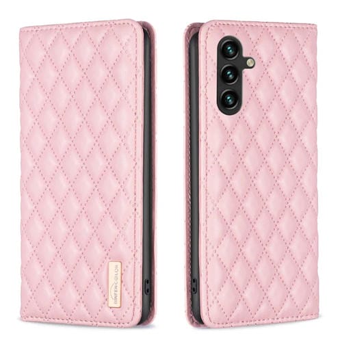 Funda para Teléfono Samsung Galaxy A55 con Tapa de Cuero Magnético Diamond Lattice (Rosa)