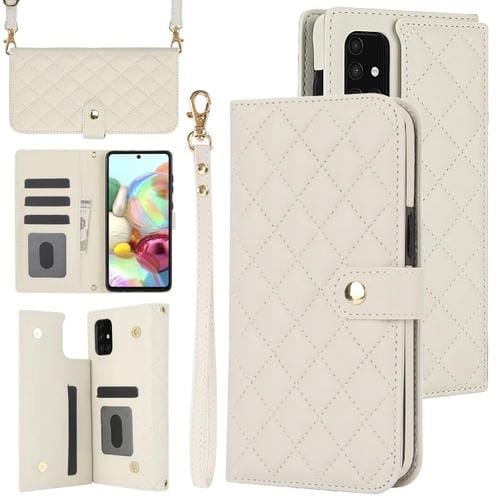 Estuche para Teléfono Samsung Galaxy A71 4G Crossbody Cuero Rómbico Multifunción (Blanco)