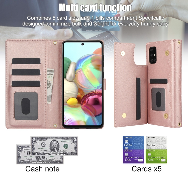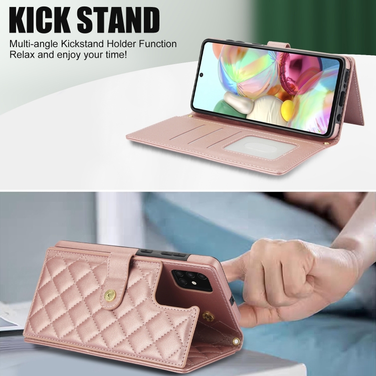 Funda Cruzada de Cuero Samsung Galaxy A71 4G Multifunción (Oro Rosa)