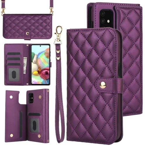 Funda Cruzada de Cuero Samsung Galaxy A71 4G Rómbico Multifunción (Púrpura Oscuro)