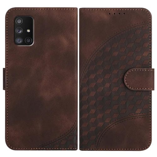 Funda para Samsung Galaxy A71 5G Yx0060 Cuero con Relieve y Cabeza de Elefante con Cordón (Café)