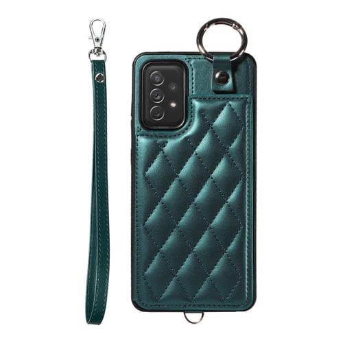 Estuche para Teléfono Samsung Galaxy A72 4G 5G con Bolsa para Tarjetas Textura Rómbica Cordón Corto (Verde)