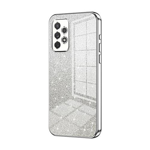 Estuche para Teléfono Samsung Galaxy A72 4G / 5G Galvanizado con Polvo de Brillo Degradado (Plateado)