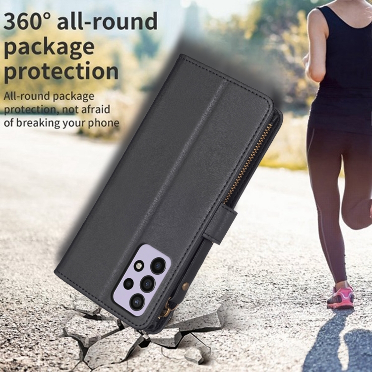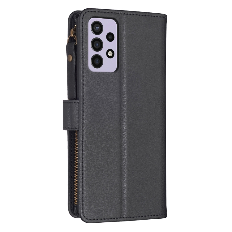 Para Samsung Galaxy A72 9 Ranuras para tarjetas Cremallera Cartera Funda de cuero con tapa para teléfono (Negro)