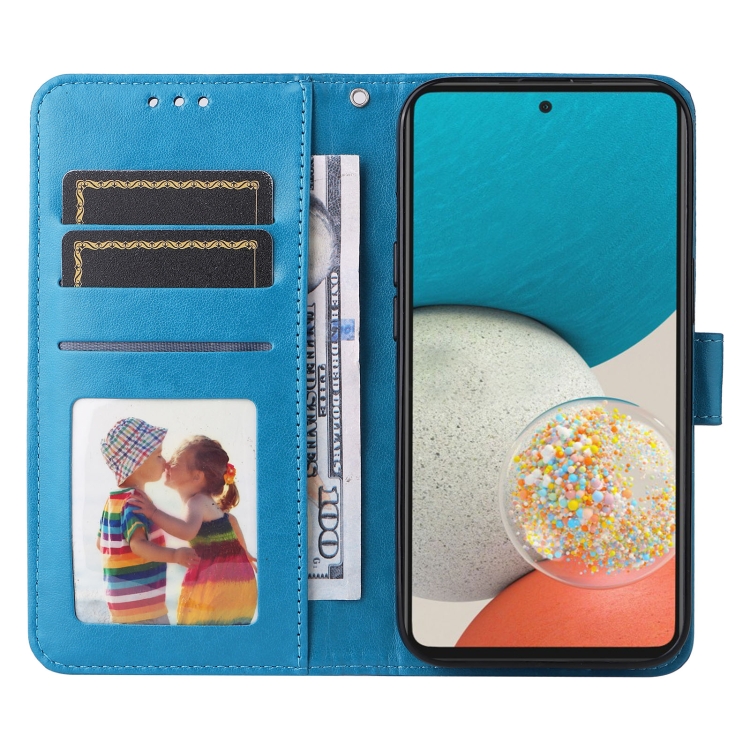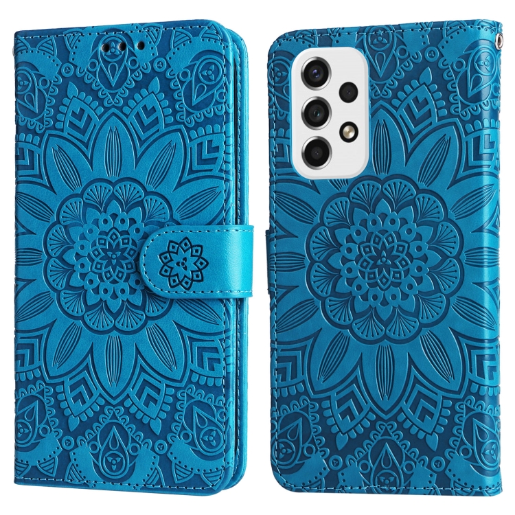 Estuche para Teléfono Samsung Galaxy A73 5G Cuero Estampado de Girasol En Relieve (Azul)