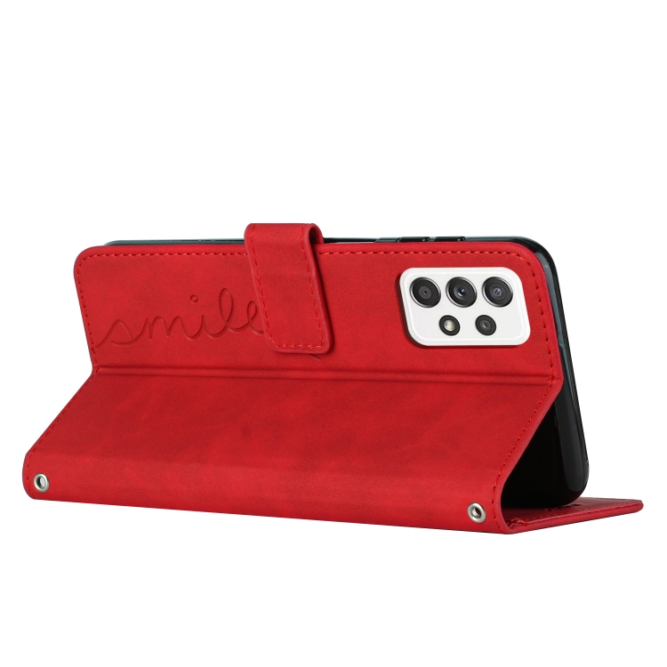 Funda de Cuero para Samsung Galaxy A73 5G Skin Feel Heart Pattern con Cordón (Rojo)