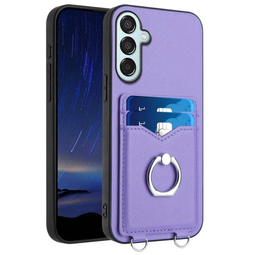 Estuche para teléfono Samsung Galaxy F15 M15 R20 con soporte para tarjeta y anillo (Púrpura)