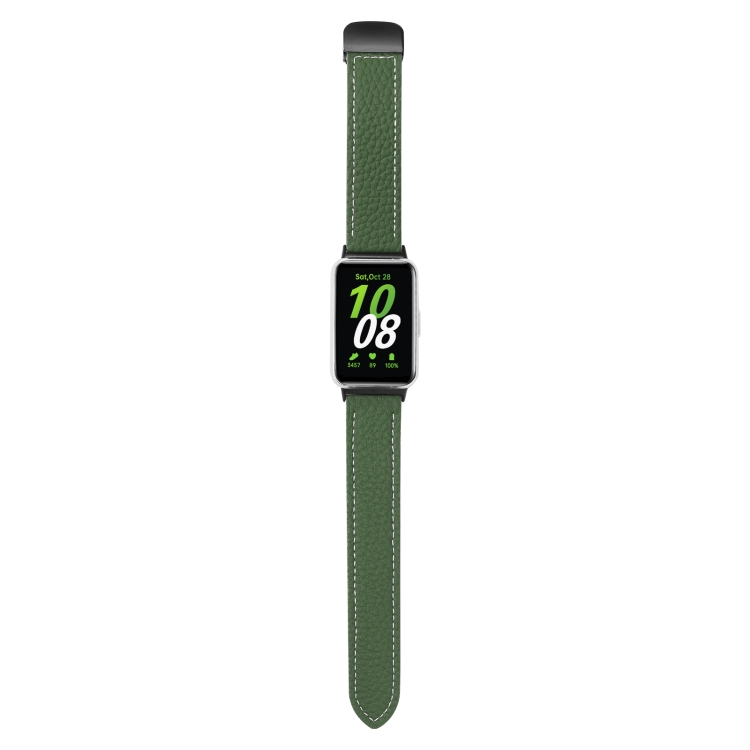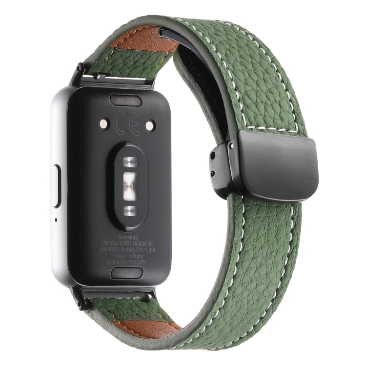 Correa de Cuero para Samsung Galaxy Fit 3 con Hebilla Magnética Negra y Textura Litchi (Verde Oscuro)