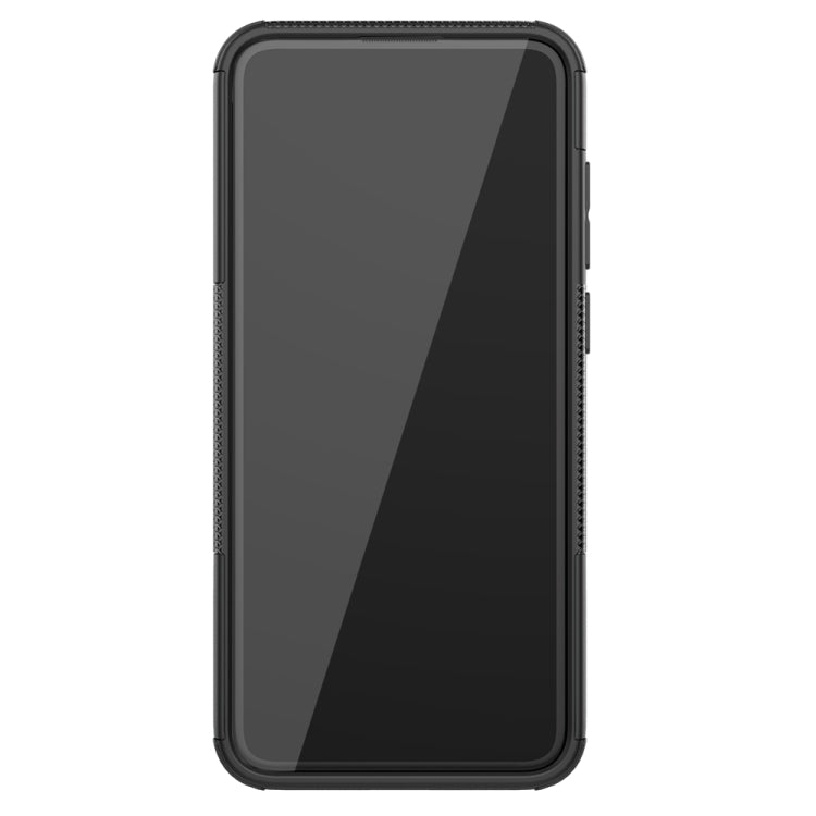 Funda Protectora TPU + PC para Samsung Galaxy M11 con Textura de Neumáticos y Soporte (Negro)