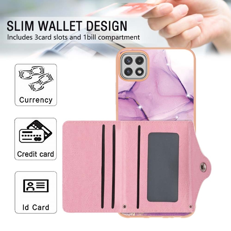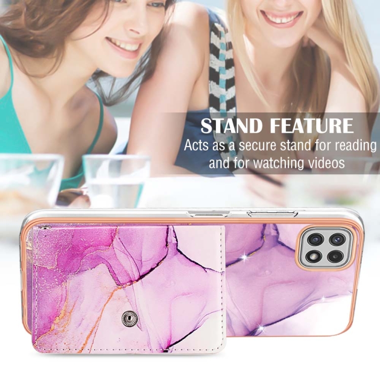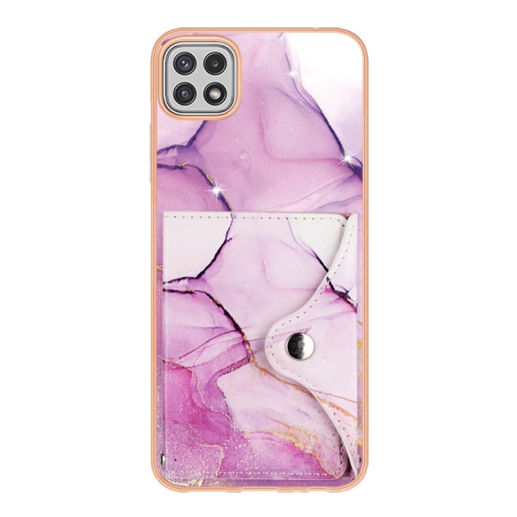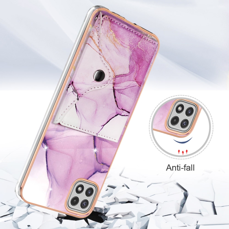 Estuche para Teléfono Samsung Galaxy M32 con Ranura para Tarjeta Imd Patrón Mármol (Oro Rosa, Morado)