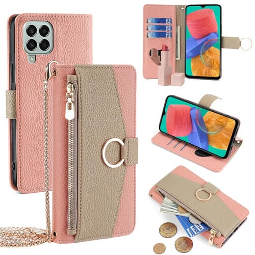 Funda para Teléfono Samsung Galaxy M33 5G Cuero Textura Litchi Cruzada (Rosa)