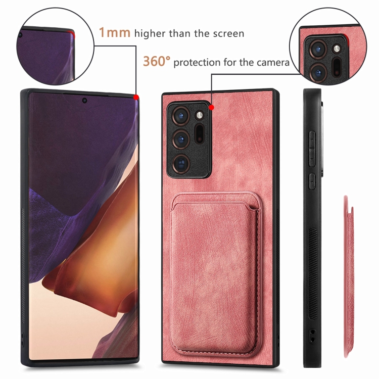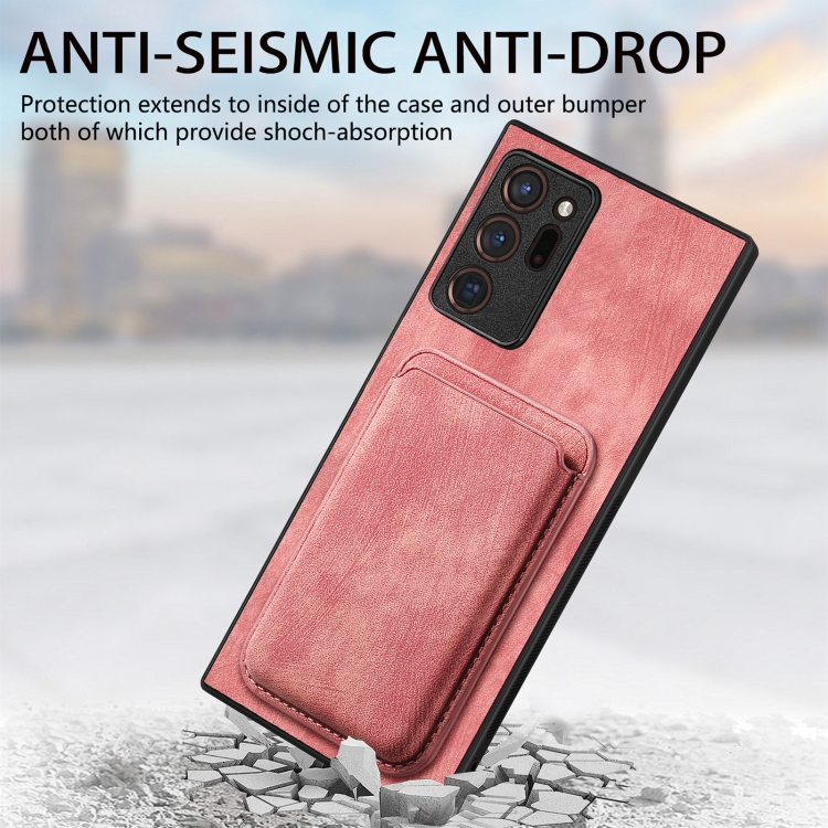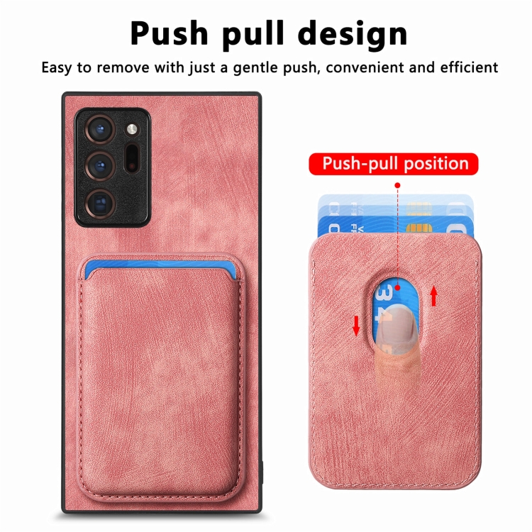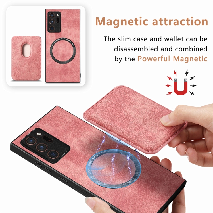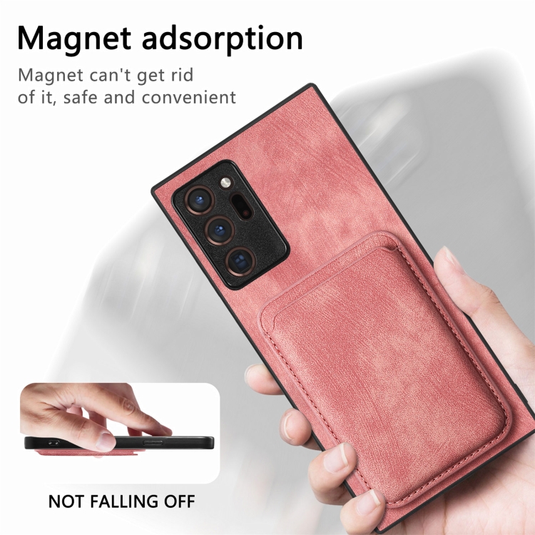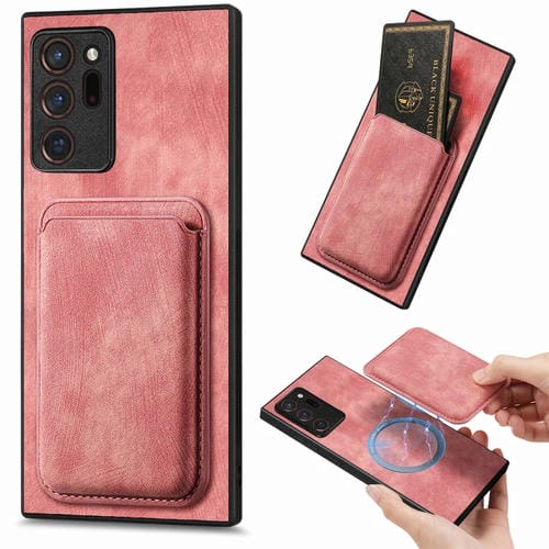 Funda de Cuero Samsung Galaxy Note20 Ultra Retro Magnética con Bolsa para Tarjetas (Rosa)