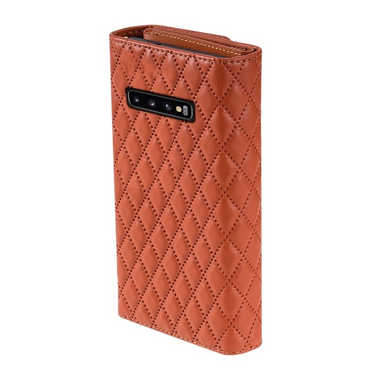 Estuche para Teléfono Samsung Galaxy S10 Cuero Rómbico Billetera MultiTarjeta Cremallera (Marrón)