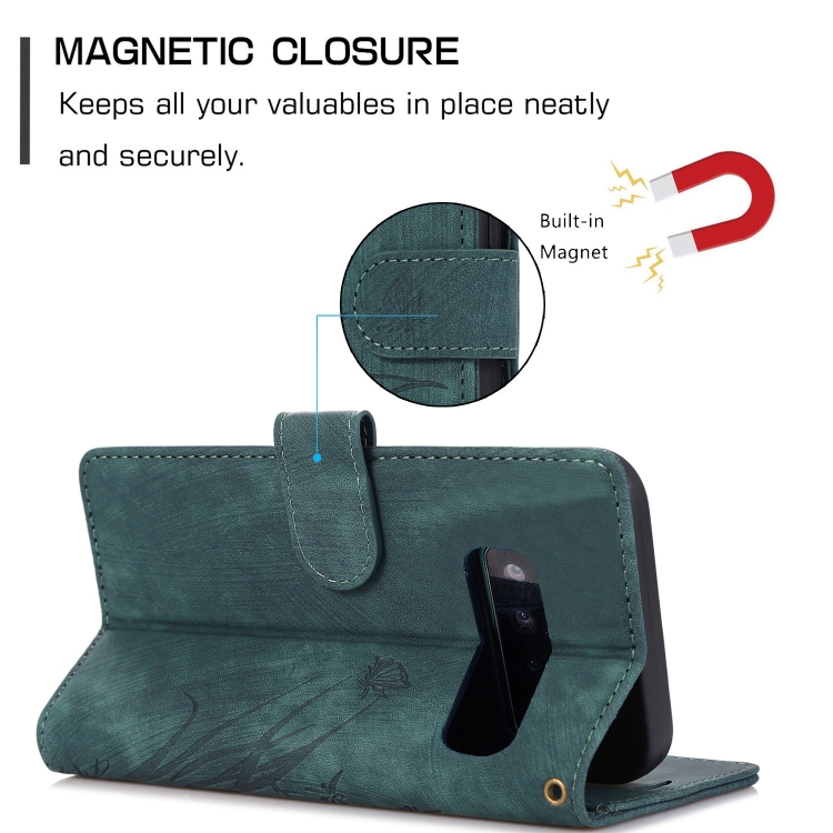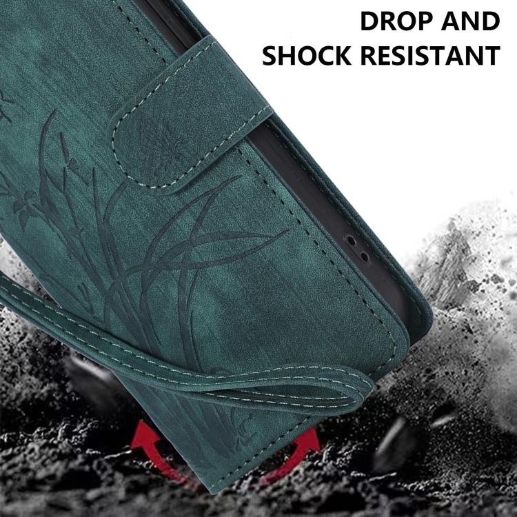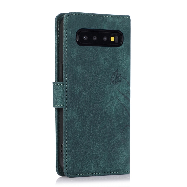 Funda de Cuero Samsung Galaxy S10 con Relieve de Mariposa Orquídea (Verde)