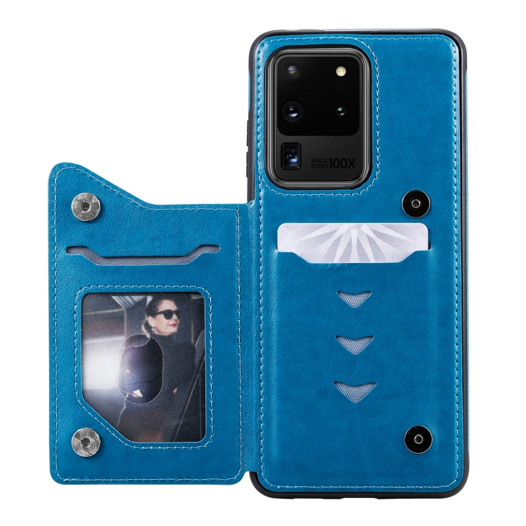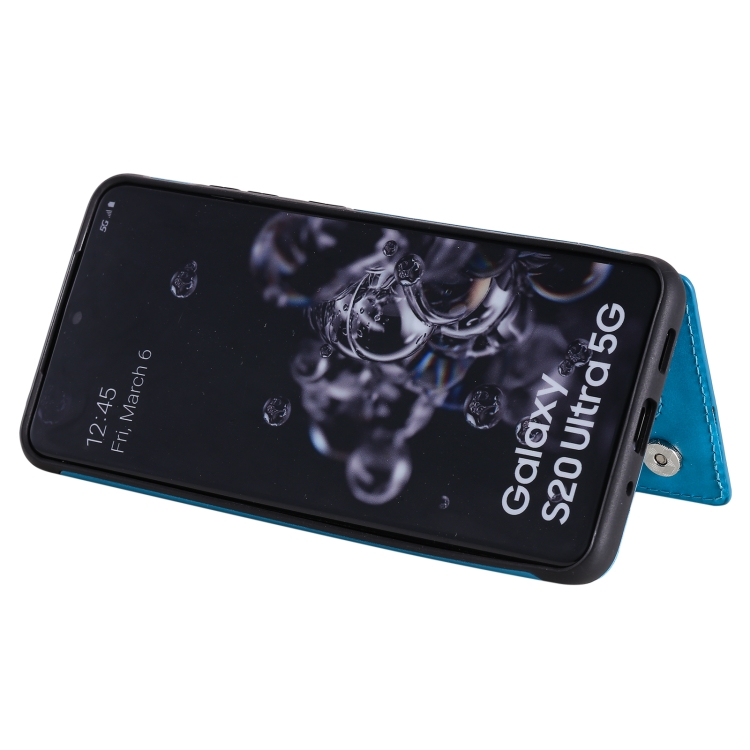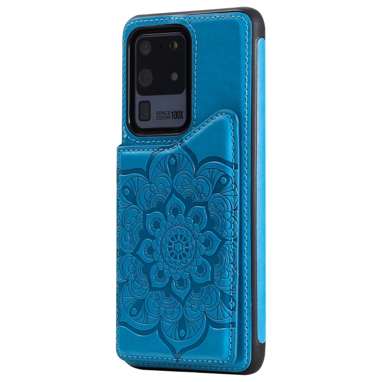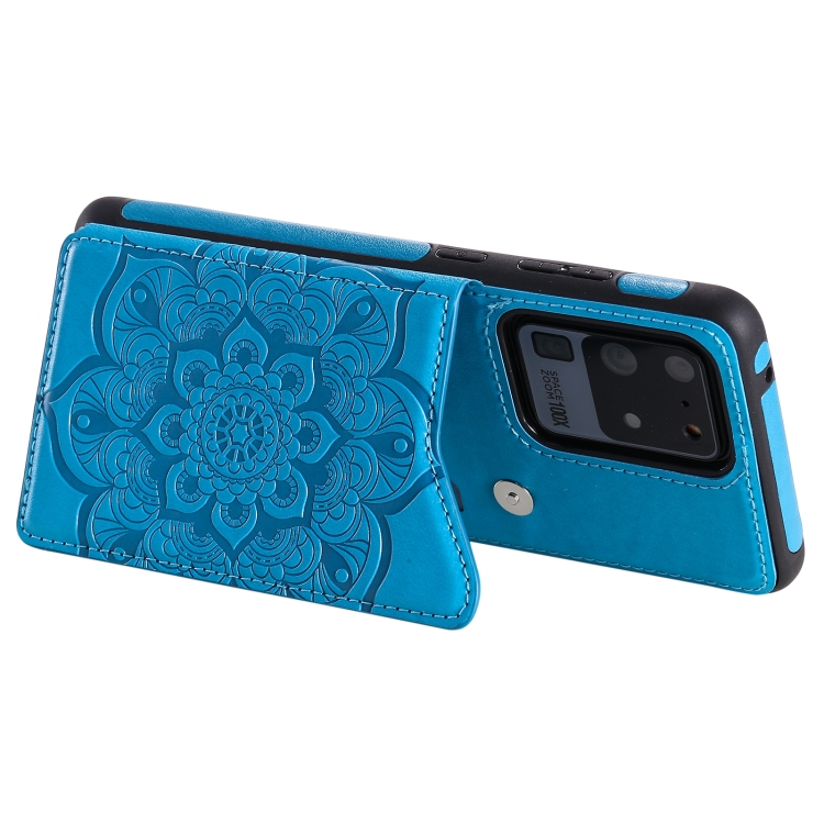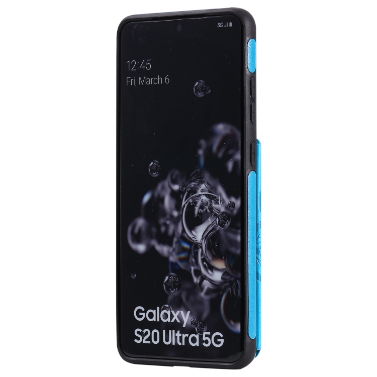 Estuche protector Samsung Galaxy S20 Eltra con patrón flor en relieve soporte y ranuras para tarjetas (Azul)