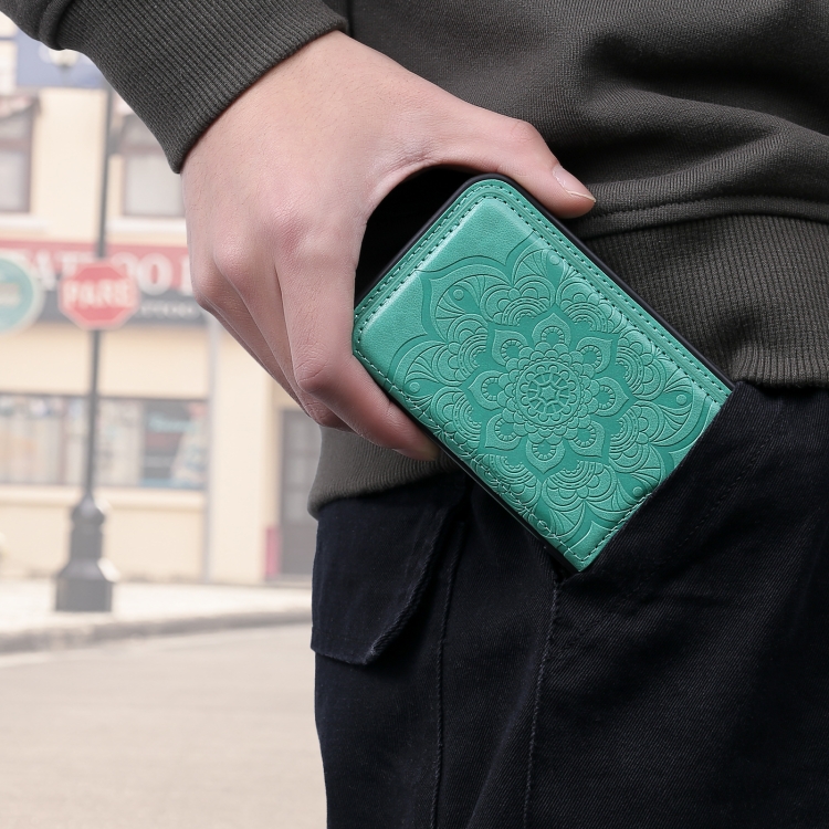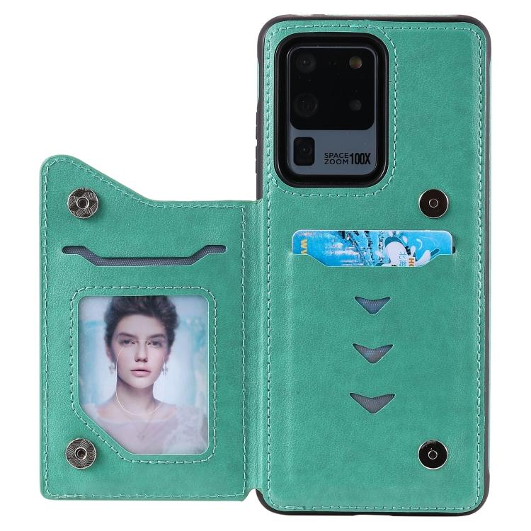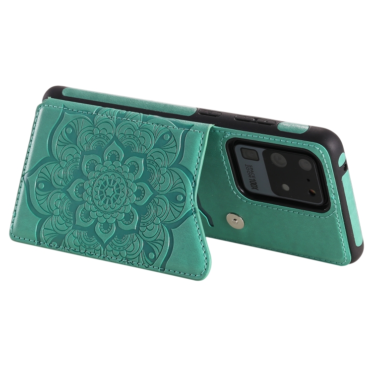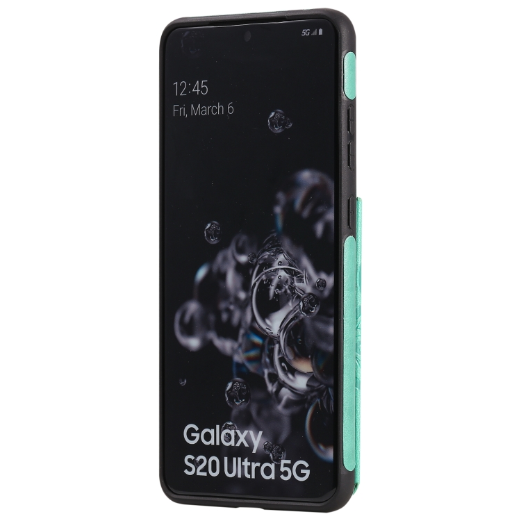 Estuche protector para Samsung Galaxy S20 Eltra con patrón de flor en relieve, soporte, ranuras para tarjetas y marco de fotos (Verde)