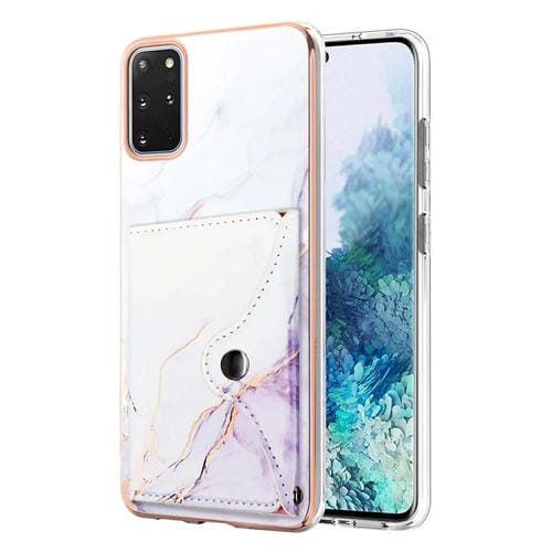 Estuche para Teléfono Samsung Galaxy S20 con Ranura para Tarjeta y Patrón Mármol (Blanco y Morado)