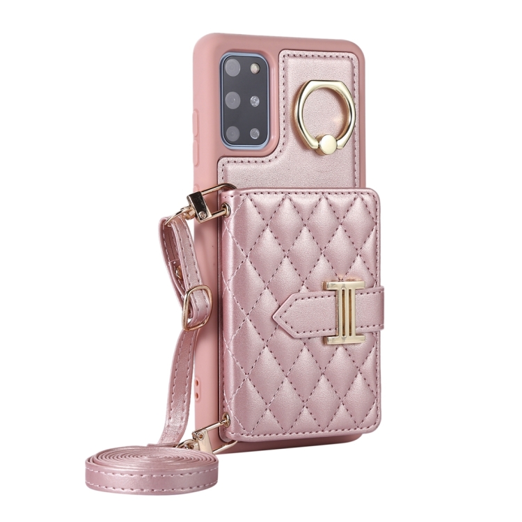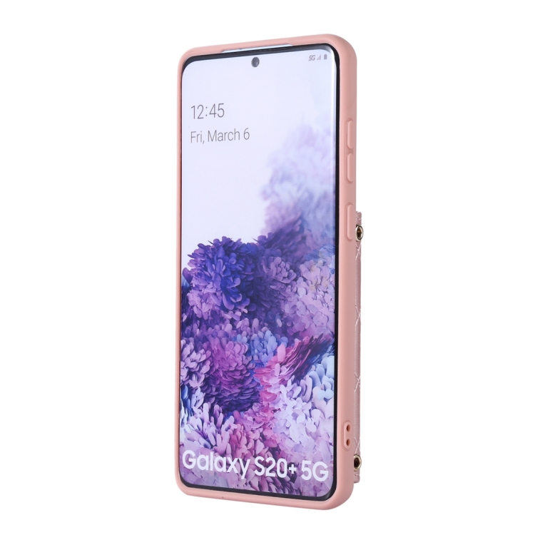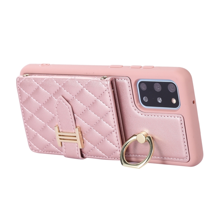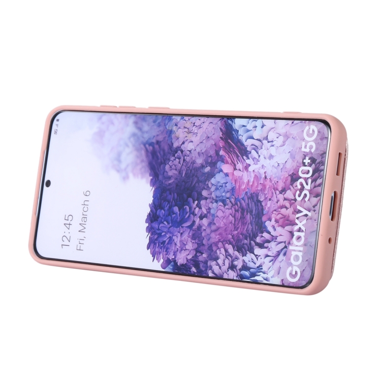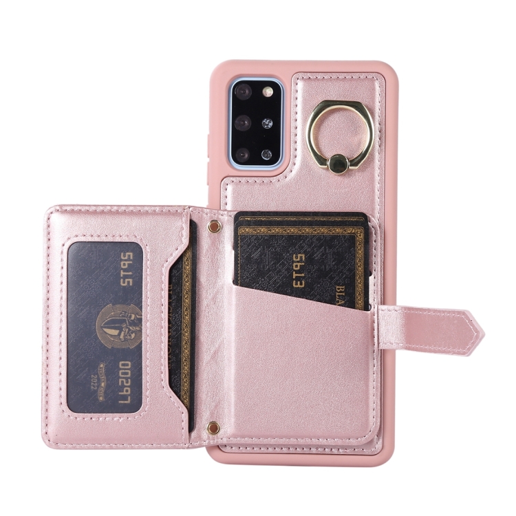 Estuche para Teléfono Samsung Galaxy S20+ con Soporte de Anillo y Bolsa de Tarjeta Horizontal con Cordón Doble (Oro Rosa)
