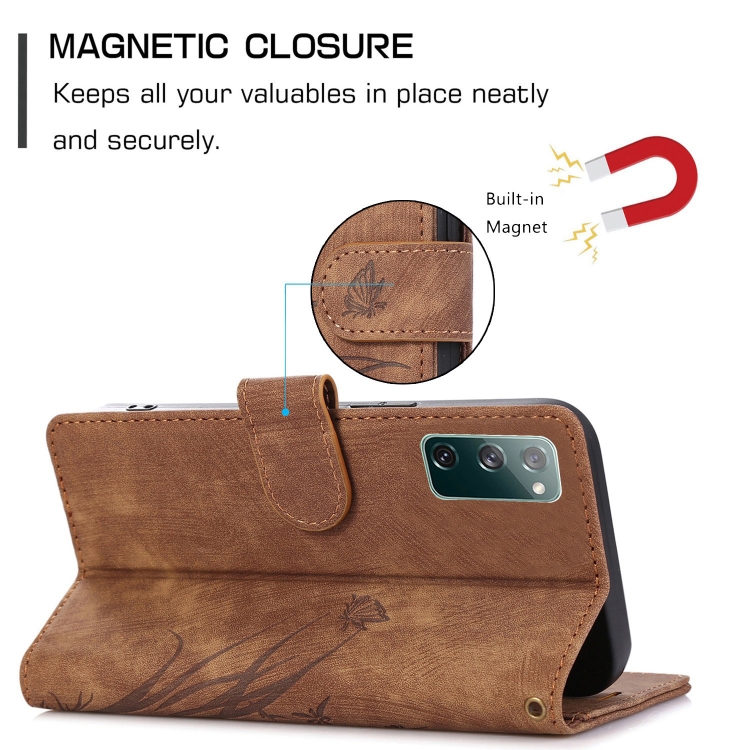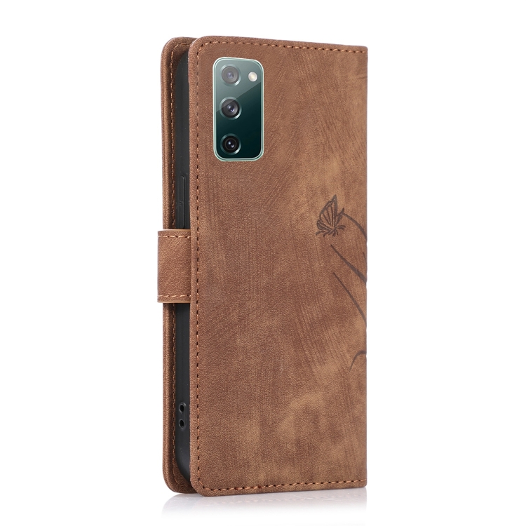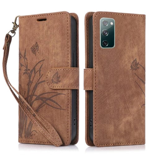 Funda para Teléfono Samsung Galaxy S20 FE Cuero Relieve Mariposa Orquídea (Marrón)